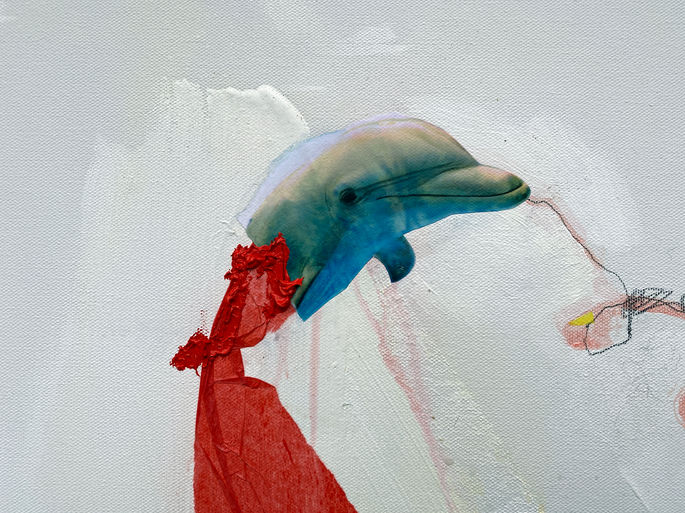 "Phoo 046". 2021. 24 x 30 in. Mixed media on moussed edged canvas.